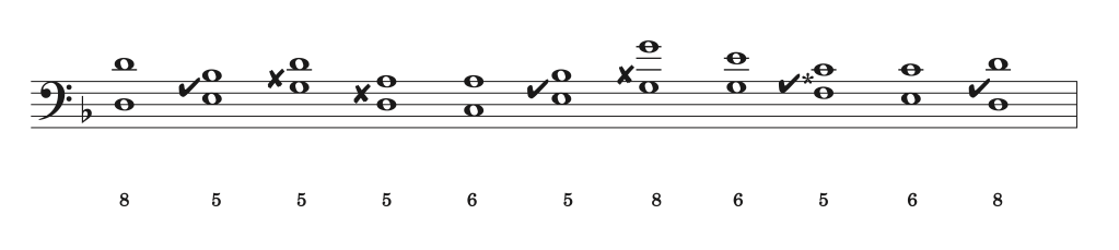 Desde el renacimiento, el intervalo de tercera y sexta diatónica es bien considerado y no produce falta armónica. En el ejemplo anterior tan solo se han tenido en cuenta para su revisión los intervalos justos.