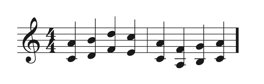 Movimiento contrario. Concepto de contrarios: una voz mueve en dirección opuesta a la otra.