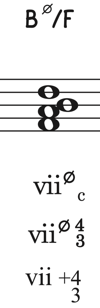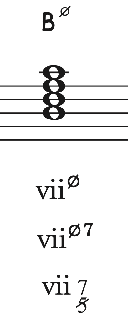 Ahora bien, cuando el séptimo grado contiene un intervalo de séptima desde su fundamental se cifrará con un o7 o ø7 para séptima disminuida y semidisminuida respectivamente. El círculo aislado ahora será tratado únicamente en los acordes triadas disminuidos y diferenciándose con o7 o ø7 para el acorde de séptima sobre sensible de ambos modos.