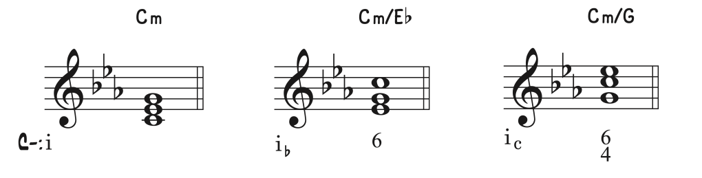 En estado fundamental el cifrado barroco dispone el acorde por superposición de terceras. De no indicar ningún valor numérico en el cifrado, se espera que el acorde esté en estado fundamental con su respectiva tercera y quinta. La primera inversión sustituye la quinta por la sexta, es por este modo que el cifrado obliga a calificar el intervalo correspondiente desde la nota del bajo, encontrando un acorde cuya fundamental está a distancia de sexta. En el caso de la segunda inversión, no aparece la tercera o la quinta. Para la sonoridad seis-cuatro debemos señalizar el intervalo correspondiente. La quinta es sustituida por la sexta y la tercera por la cuarta, obteniendo el cifrado resultante 6/4).