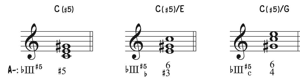 En la tonalidad menor, el tercer grado aparecido como resultado del uso de la escala menor melódica genera un acorde aumentado. Al ser una alteración accidental a la tonalidad menor, acompañaremos el intervalo afectado con la alteración correspondiente, no será tratada como sensible (+) al no estar dispuesta sobre un acorde con función de dominante.