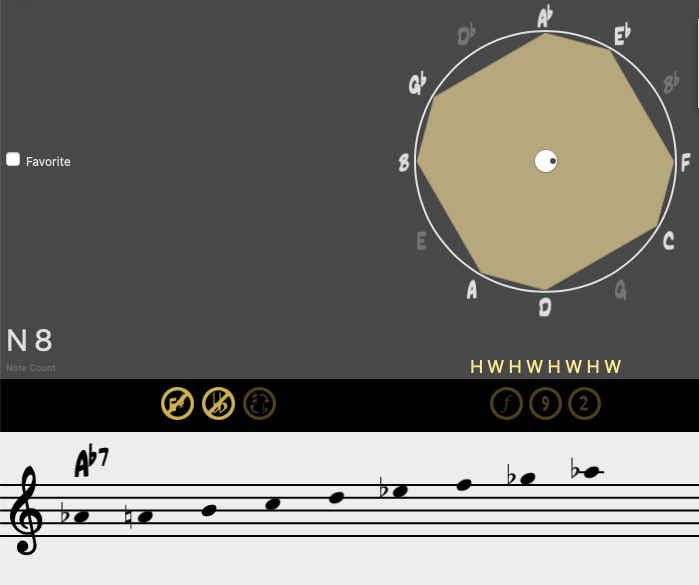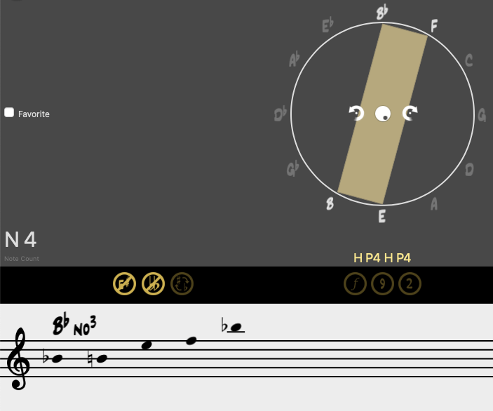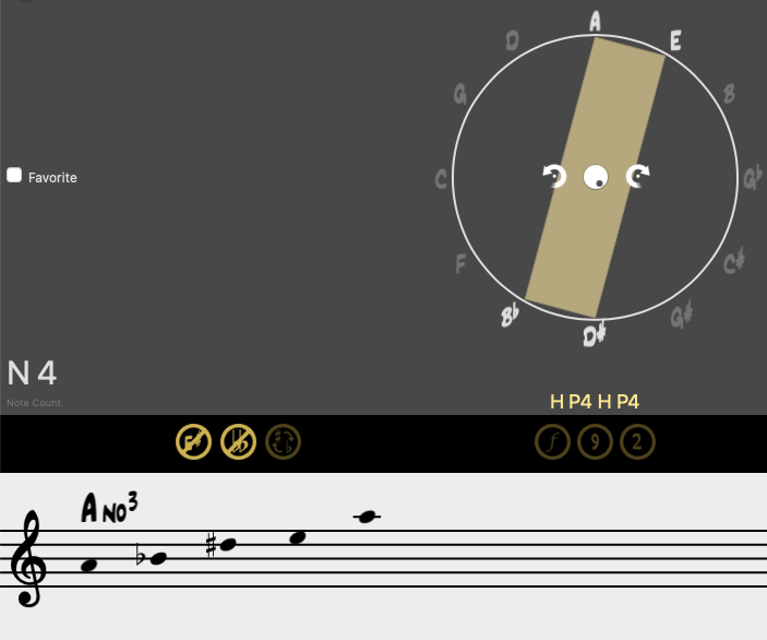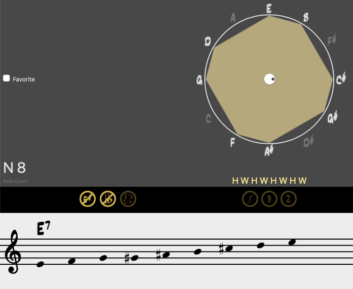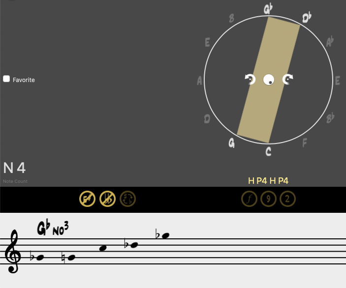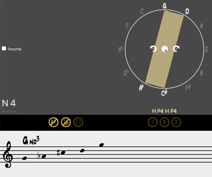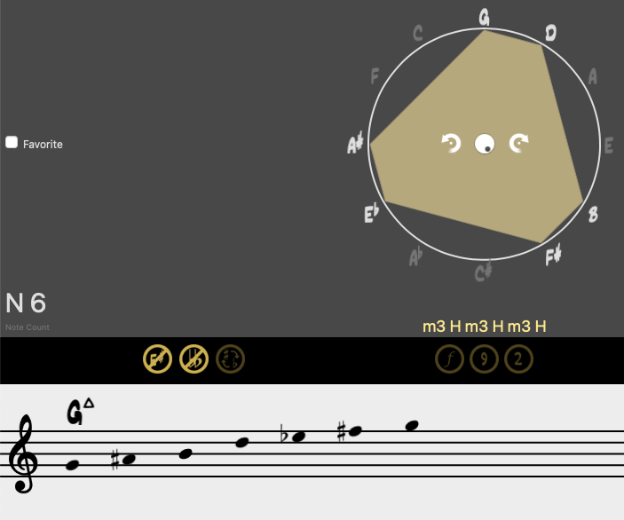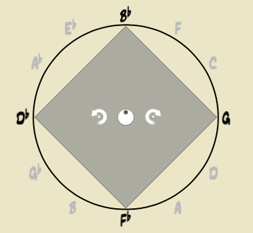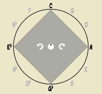 En esta ocasión, sustituimos la fundamental por cualquier nota que pueda ocupar su lugar dentro del sistema axial. Mantendremos la misma armonía, basándonos en la construcción del denominado acorde Delta