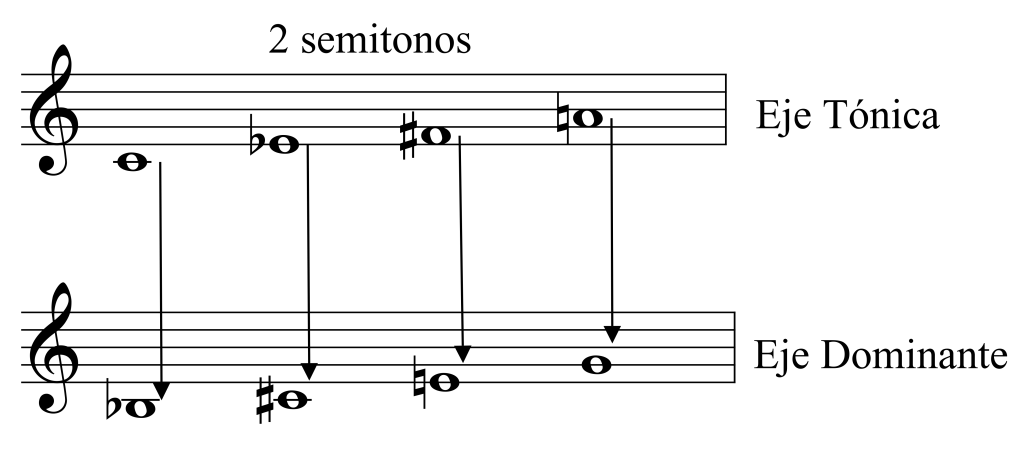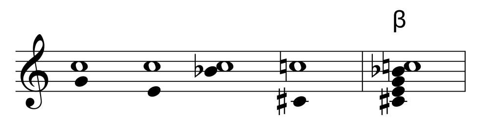 La suma de la fundamental con el eje de la dominante conforma el acorde Beta (β)