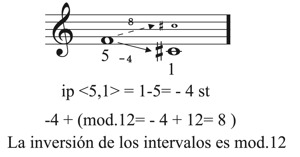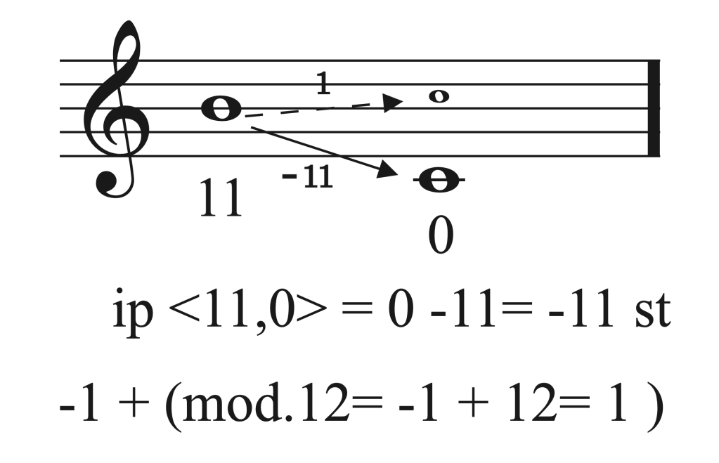 El número resultante de la distancia del intervalo cuando éste es superior a 12 semitonos queda reflejado en módulo 12. Si el número es negativo se añade mod.12 a su valor.