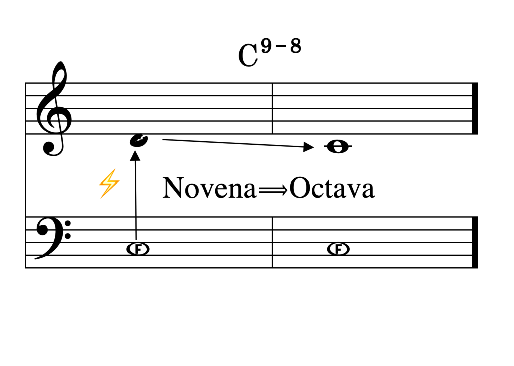 Cualquier intervalo disonante tiende a resolver por grado a la nota más próxima.