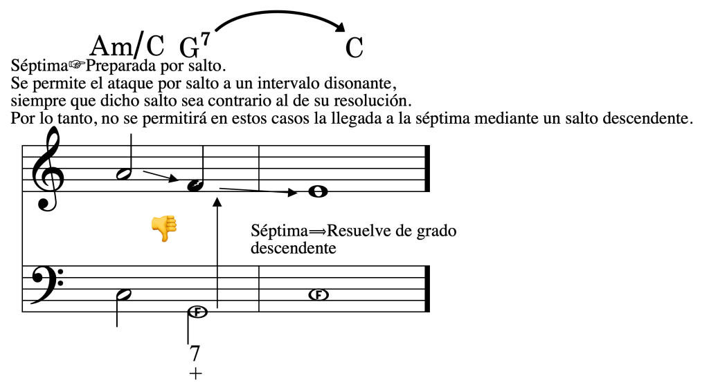 Cuando no sea propicio llegar a la preparación de la séptima por ninguno de estos dos casos, se puede acceder a la séptima por salto, siempre y cuando se acceda a la séptima por salto ascendente, ya que su resolución obligada es la de conducir por movimiento contrario.