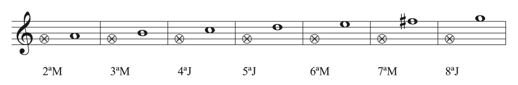 | Sexta | Mayor | 4 tonos y 1 semitono | 6 |