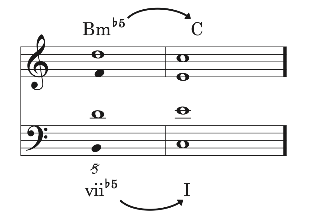 Una vez resuelto el tritono tonal la duplicación de la tercera debe resolverse evitando llevar a cabo las faltas armónicas académicas. Una voz puede conducir a tónica mientras la otra recae sobre la tercera.