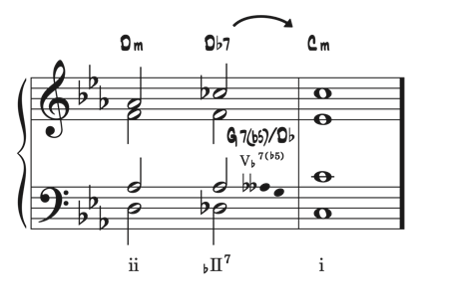 Al añadir la séptima menor sobre el acorde tríada bII, se genera un acorde de la misma especie que el acorde de Dominante: Tercera Mayor, Quinta Justa y Séptima Menor.